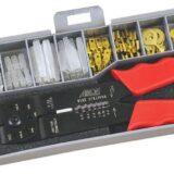 アースを取るときは丸形やクワ型端子を使用し、配線同士を繋ぐときはギボシ端子を使用し、いずれもきちんとカシメて使用します。